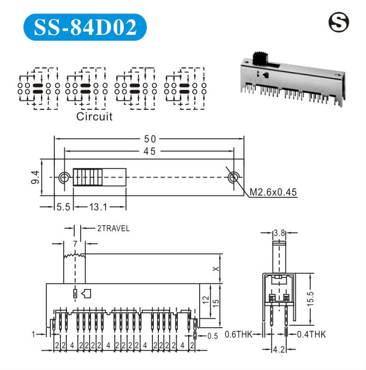 額定負(fù)荷 DC 50V  0.5A 動(dòng)作力 250±100gf